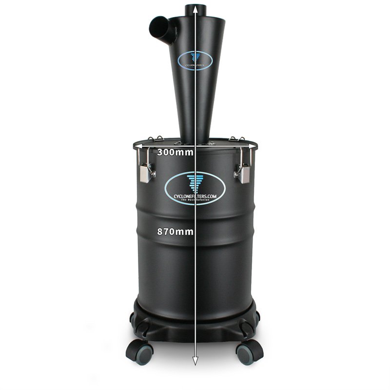 The metal M-30R filter set is a complete set that includes everything you need to get started right away: a metal cyclone filter, stainless steel dustbin with movable dolly, and vacuum hose. The set features the latest version of our metal model M cyclone filter. The metal cyclone filter is the best of its kind, filtering up to 100 times more effectively than most other metal filters on the market.