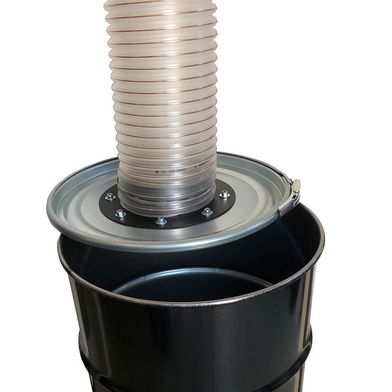 Met de XXL verlengkit wordt het legen van een opvangvat eenvoudig. De verlengkit komt tussen de bovenkant van het deksel en de onderkant van het filter. Het metalen XXL cycloonfilter hoeft zo niet meer boven op het deksel van het opvangvat te staan, maar kan zijn eigen vaste plek krijgen. Alle op het filter aangesloten buizen en/of afzuigslangen kunnen bevestigd blijven wanneer het opvangvat moet worden geleegd.